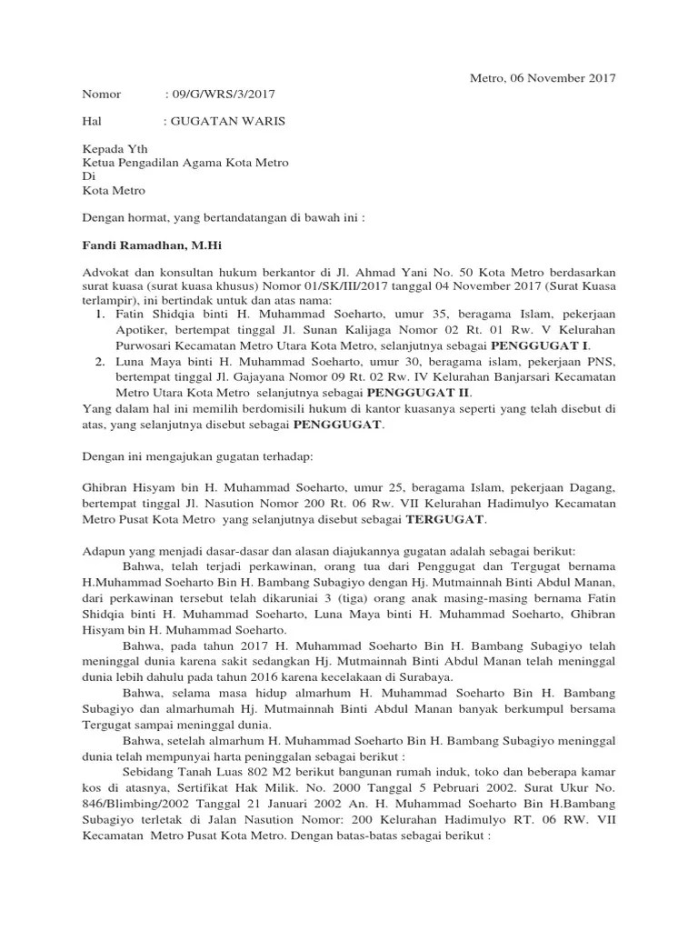 Contoh Surat Gugatan Resmi / Contoh Surat Kuasa Gugatan Utang Piutang : Misalnya adalah surat gugatan sengketa tanah.